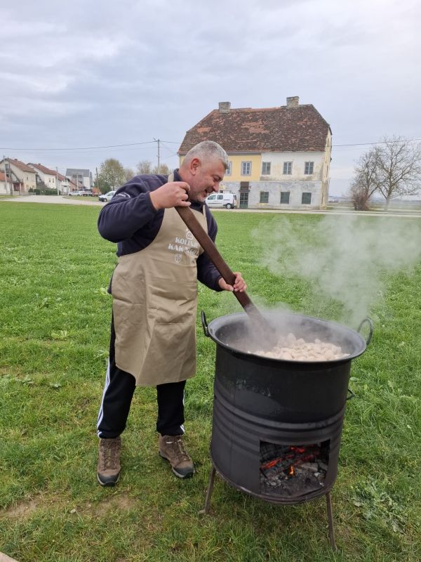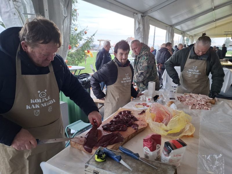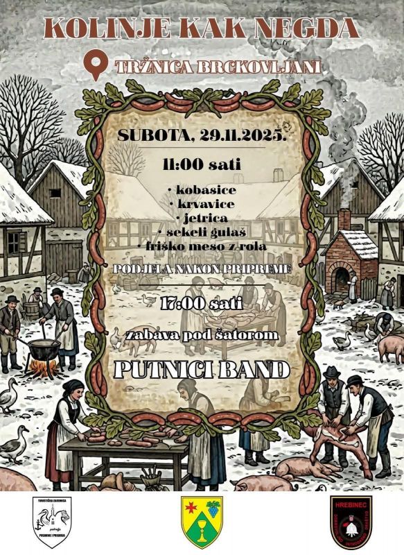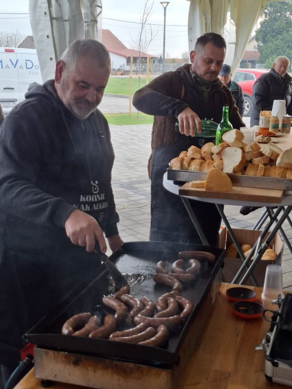 Podjela finih mesnih specijaliteta - krvavice, kobase, meso z rola, pržena friška jetrica, sekeli gulaš... kreće čim priprema bude gotova, a od 17:00 sati vas pod šatorom očekuje odlična zabava uz bend Putnici.