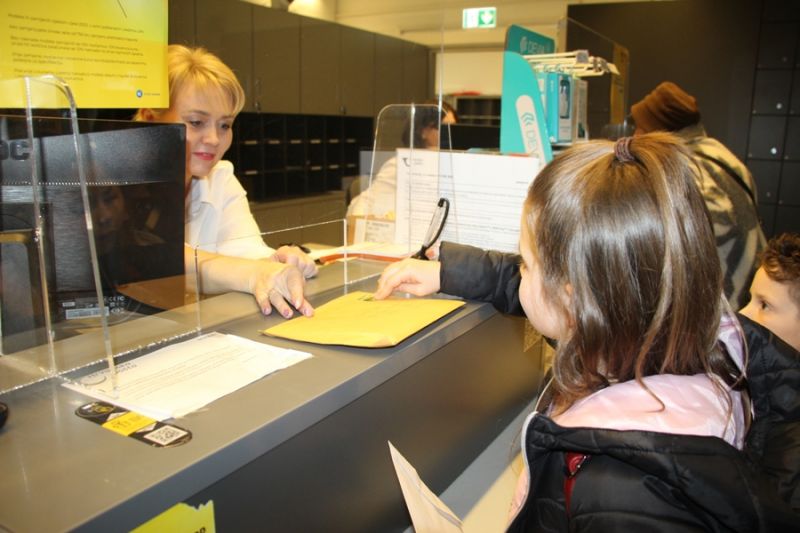 Tamo ih je dočekala voditeljica gđa Ivančica i provela ih skroz iza šaltera, među uredno poslagana pisma i razne pošiljke. Sve im je objasnila, saznali su da se neuručena pošta arhivira i čuva šest mjeseci i bilo bi dobro napisati adresu primatelja i zalijepiti marku. Tako su i oni učinili poslavši pismo sami sebi. Zatekli su poštara kako slaže pisma po pretincima, prije nego li ih stavi u torbu i na motoru krene raznositi, bilo ljeto ili zima. Ovaj odgovoran i težak posao radi već dugo i poznaje svaku ulicu u gradu i, naravno, u Lupoglavu. I on kao i Kolbaba (lik iz bajke) već po boji kuverte zna koja su pisma „hladna“, koja „topla“ dok se s poštanskim patuljcima nije susreo, otkrio im je simpatični listonoša prije zajedničkog fotografiranja.