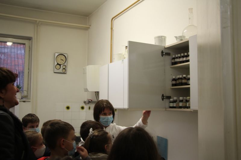 Nakon toga, posjetili su Ljekarnu Grgošić gdje im je mag.pharm. Vesna pojasnila da, osim što prodaju lijekove, neke i sami rade poput krema ili sirupa. Moraju sve dobro znati o sastojcima kako bi i lijek bio dobar, za to se mora puno, puno učiti. Za kraj, posjetili su Malu galeriju i razgledali izložbu „Zima“. O slikanju im je govorila predsjednica Likovne udruge Dugo Selo Jadranka Bogdanović. Ona slika dugi niz godina i to joj je hobi, inspiraciju nalazi posvuda – u krajolicima, ljudima, životinjama. Učenici su se pohvalili kako slikaju vodenim bojama i temperama na satu likovnog i kod kuće. Omiljeni motivi su im kuće, cvijeće, kućni ljubimci, auti... Ako je slika lijepa uokvire je, ako ne počnu iznova. Među izloženim djelima svatko je izabrao favorita diveći se šarenilu, ali i snježnim prizorima.