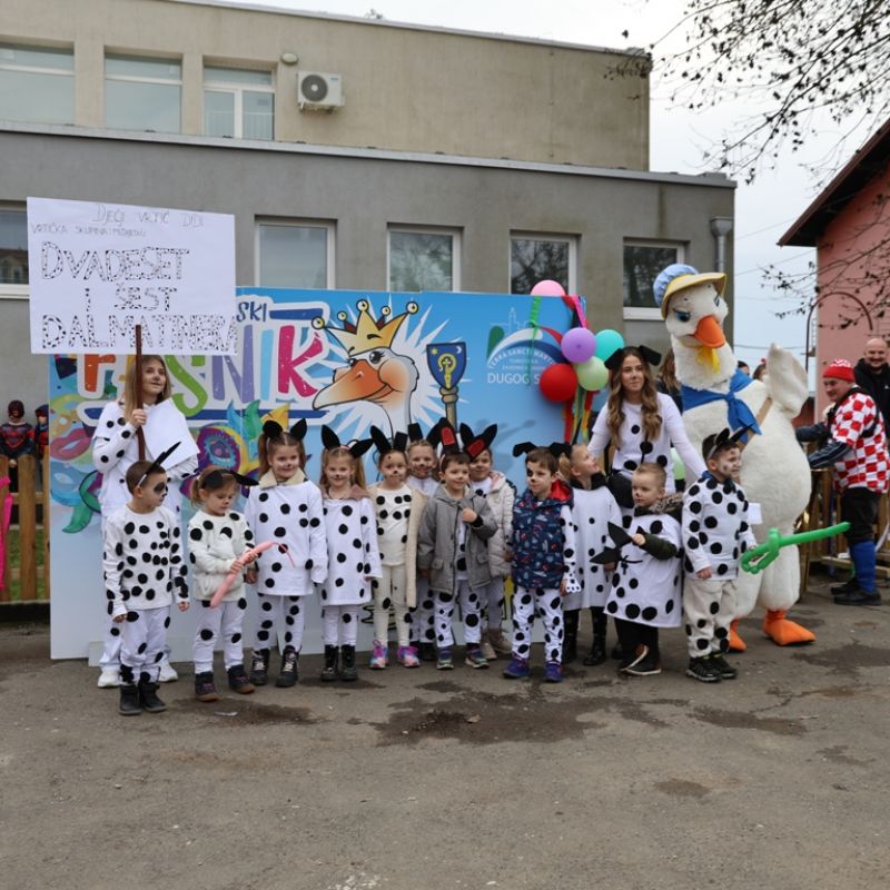 U organizaciji Grada Dugo Sela i Pučkog otvorenog učilišta Dugo Selo, kod Glazbene škole Dugo Selo održan je ovogodišnji Dugoselski fašnik, koji je okupio ukupno 21 maskiranu skupinu – većinom dječjih, ali i nekoliko odraslih ekipa. Pozitivnu i veselu atmosferu koja je vladala danas poslijepodne dodatno je razigrao smijeh djece, šarenilo kostima i podrška brojne publike. Fašnik u Dugom Selu nije samo zabavni program – on je dio identiteta, tradicija koju ovaj grad i njegovi ljudi brižno čuvaju, nastojeći svaku novu generaciju „zaraziti“ pozitivnom i kreativnom energijom.