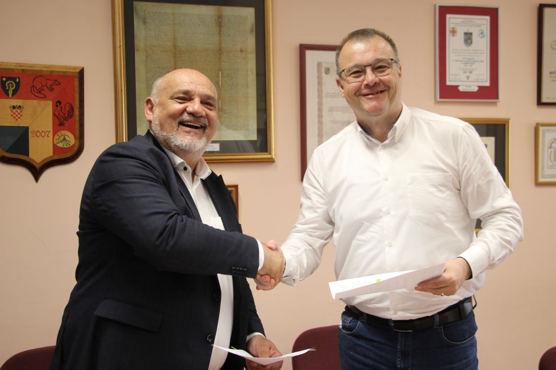 Gradonačelnik Dugog Sela Nenad Panian i direktor Vodoopskrbe i odvodnje Zagrebačke županije d.o.o. Tomislav Masten danas su potpisali kupoprodajni ugovor za nekretninu, zgradu bivšeg DUKOM-a u Zorićevoj ulici, koju će Grad preurediti i prenamijeniti za potrebe Dnevnog centra za starije osobe.