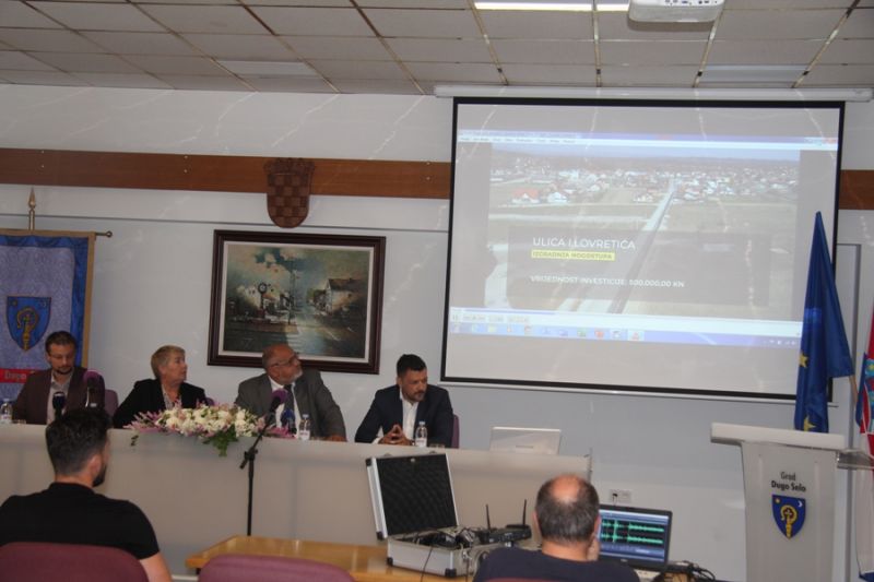 Tiskovnu konferenciju održao je danas gradonačelnik Dugog Sela Nenad Panian, zajedno sa svojim suradnicima zamjenicom Jasminkom Kokot Bambić i pročelnicima odjela - za pravne poslove, društvene djelatnosti i protokol Borisom Savićem te za financije i komunalno gospodarstvo Deanom Dragičevićem. Uz prezentaciju realiziranih projekata, gradonačelnik Panian najavio je i novi, veliki projekt Sportsko-edukativni centar vrijedan 100 milijuna kuna.