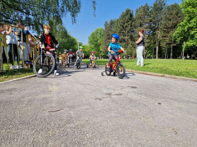 Sudjelovale su odgojne skupine Kockice, Ribice i Mišići. Trener i sportaši iz Biciklističkog kluba Dugo Selo su pazili na sigurnost te malim sudionicima objasnili pravila ponašanja tijekom vožnje.