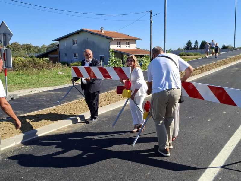 Simboličkim uklanjanjem zaštitnih ograda koje su označavale gradilište, gradonačelnik Grada Dugog Sela Nenad Panian, sa suradnicima, pustio je danas u promet i četvrti, posljednji u nizu nadvožnjaka preko željezničke pruge, na području grada.