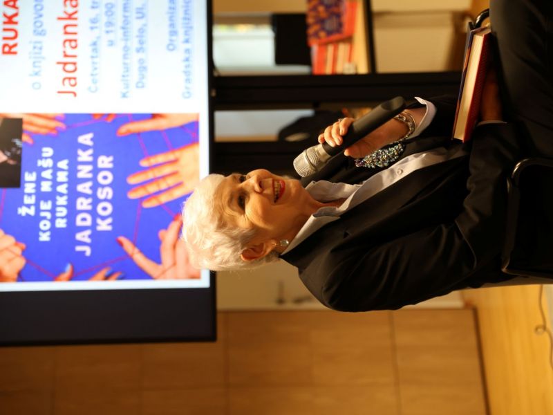 U prostoru KIC-a večeras je održano predstavljanje nove knjige Jadranka Kosor Žene koje mašu rukama, u organizaciji Gradska knjižnica Dugo Selo. Riječ je o jedanaestoj knjizi istaknute hrvatske političarke, novinarke i publicistkinje koja je obnašala dužnost predsjednice Vlade Republike Hrvatske od 2009. do 2011. godine, kao prva i dosad jedina žena na toj funkciji. Kosor je tijekom dugogodišnje političke karijere bila i saborska zastupnica u više mandata, potpredsjednica Vlade te ministrica obitelji, branitelja i međugeneracijske solidarnosti, a aktivno je sudjelovala i u ključnim političkim procesima, uključujući završetak pregovora Hrvatske za članstvo u Europskoj uniji.