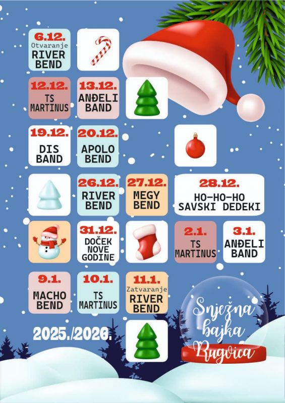 Što se subotnjeg otvorenja Snježne bajke tiče, Cepetić je naveo kako će u 17 sati u šator stići Sveti Nikola s poklonima za mališane, dok od 19 sati slijedi zabava uz River bend.