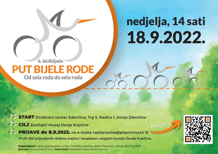 Staza u dužini od 17 km praznik je za oči i uši, za dušu i tijelo. Prijave se primaju do 8. 9. 2022. do 12:00 h na mail Ova e-mail adresa je zaštićena od spambota. Potrebno je omogućiti JavaScript da je vidite. ili na link prijava. Prvih 100 prijavljenih dobiva poklon pakete s majicama i platnenim vrećicama, ručak te besplatni razgled Zavičajnog muzeja Donja Kupčina! Za sudionike biciklijade bit će organiziran prijevoz bicikala i biciklista iz Pisarovine do starta.