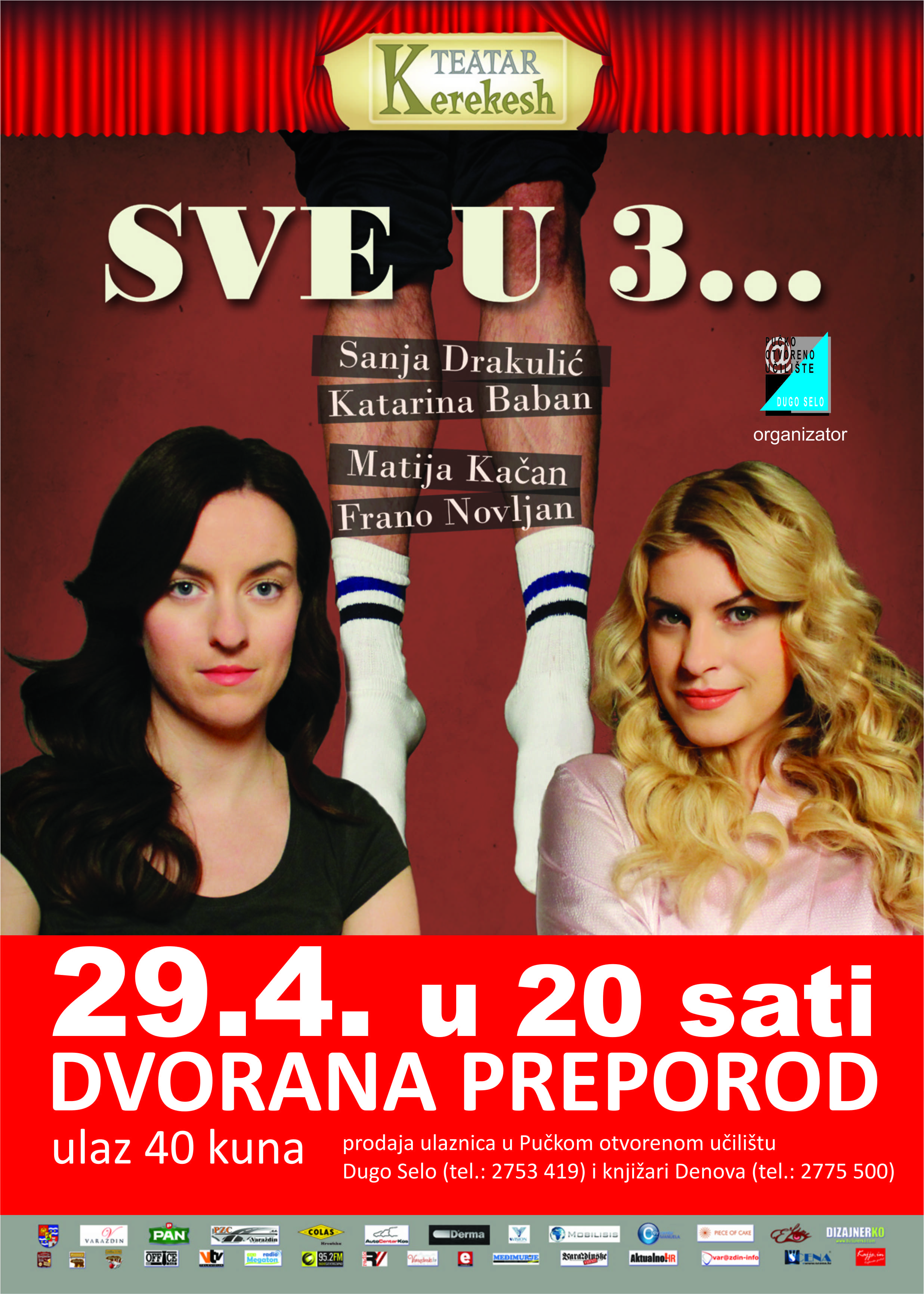 Najnovija komedija Kerekesh Teatra u kojoj dvije cimerice muku muče sa susjedom koji se objesio točno kod njihovog prozora. Sofija i Marlena uspijevaju uvući visećeg susjeda u svoj stan i nakon nekoliko neuspjelih pokušaja oživljavanja, uz sve komplikacije, pokojni susjed ima još iznenađenja. Velikih. Redateljica je Iva Ilakovac, a adaptaciju teksta autorskog tima predstave potpisuje Ljubomir