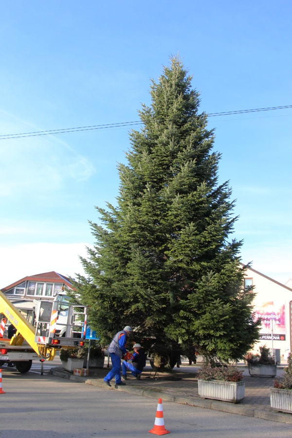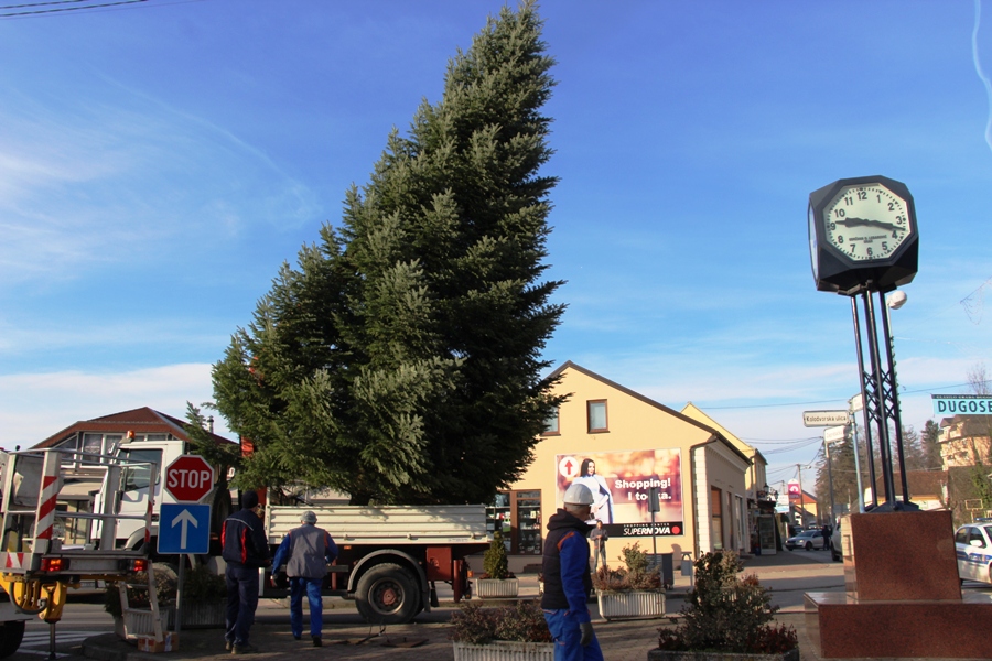 Danas ujutro u centru grada, postavljeno je veliko božićno drvce. Tradicionalno, drvce doniraju građani. Ove godine darovala ga je Jasna Babić s Kozinščaka, inače zaposlenica Gradske uprave, doznajemo od Jadranke Robić, stručne suradnice Upravnog odjela za prostorno uređenje Grada Dugog Sela koja je ovim putem i zahvalila na prekrasnoj jeli. Stablo više od 10 metara, postavila je ekipa elektroinstalaterskog obrta VMI iz Dugog Sela.
