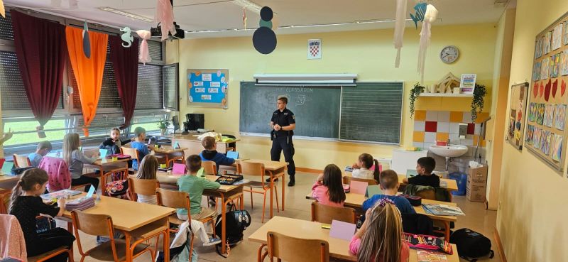 Danas i jučer u Osnovnoj školi „Ivan Benković“ prometni policajci Policijske postaje Dugo Selo upoznali su prvašiće s osnovama sigurnog kretanja u prometu te im održali kratku i zanimljivu radionicu o zaštiti najugroženije skupine sudionika u prometu – djece.
