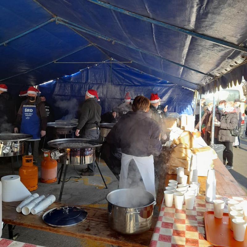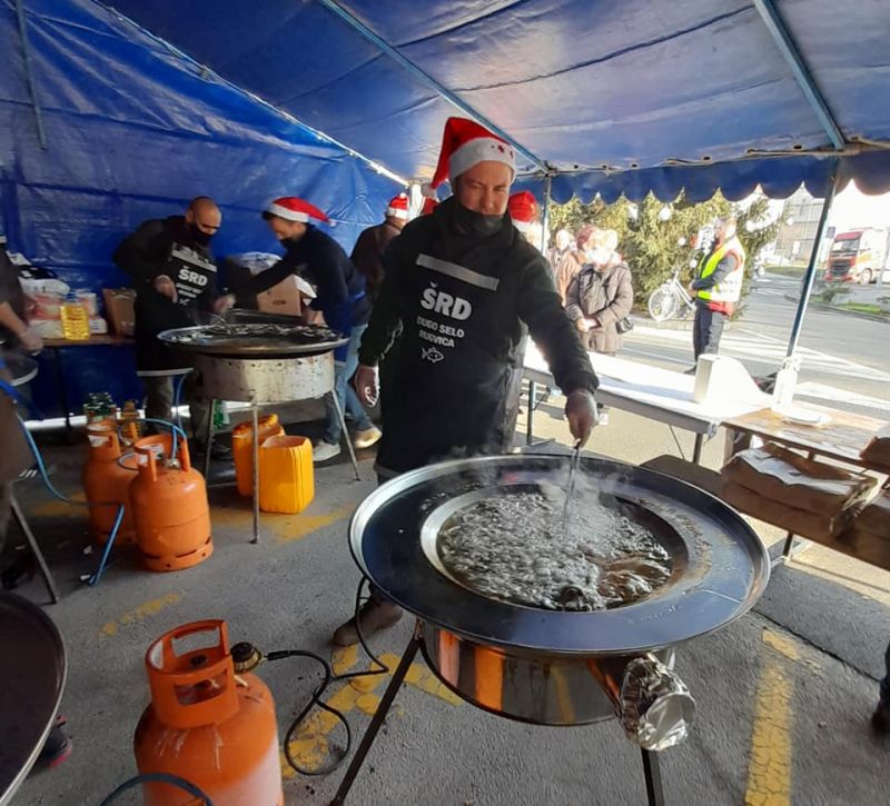 Centrom grada širi se fini miris blagdanskog menija, a kako nam je kazao tajnik ŠRD-a Dugo Selo Rugvica Vahidin Velagić ovaj posao im je lijep i drag. Za dobru kapljicu zadužena je Vinogradarsko-vinarska udruga Terra Sancti Martini. Vino iz gradskog vinograda članovi DVD-a Dugo Selo pripremili su u toploj (s dodatkom mirisnih začina) i hladnoj verziji. Fino je jedno i drugo, prija uz ribice, čulo se od građana.
