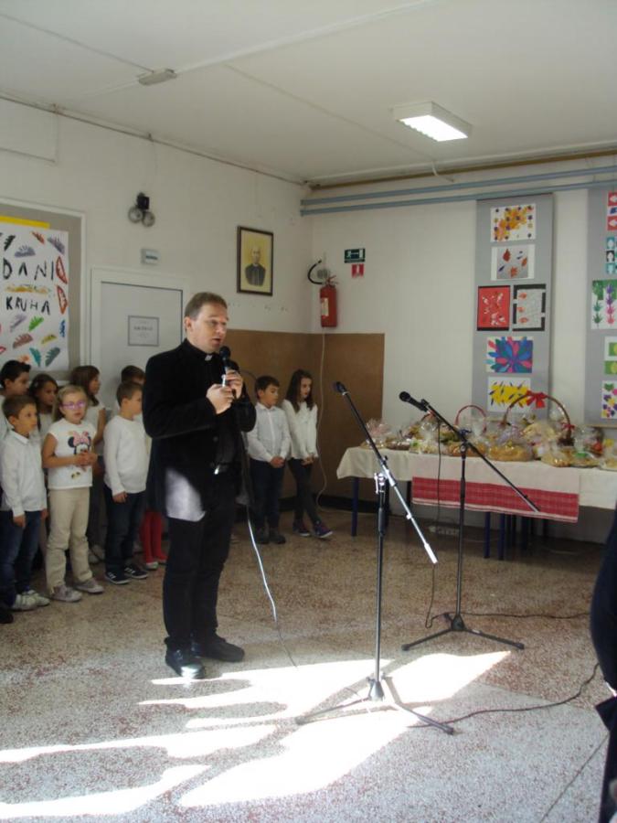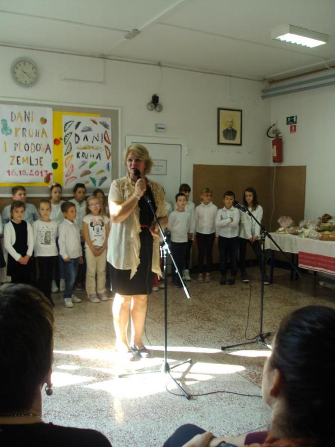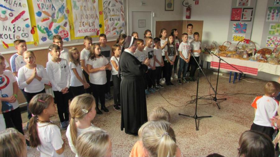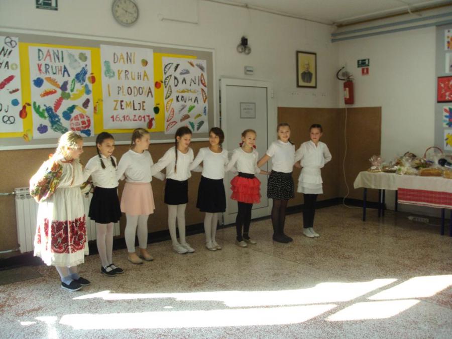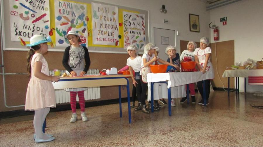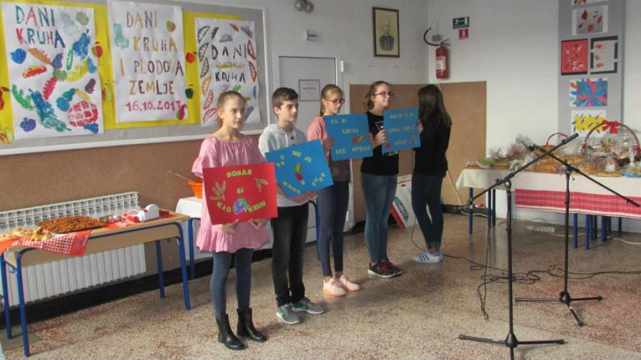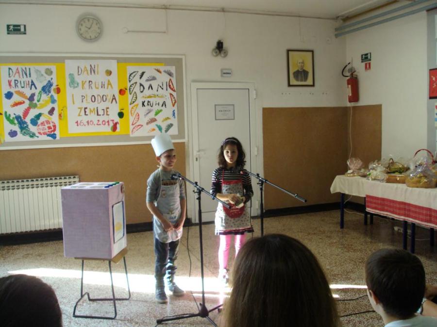 Na priredbi su nastupili učenici nižih razreda kao i polaznici školskih glazbenih i vjeronaučnih sekcija. Uz prigodne dječje recitacije na temu kruha na programu su se našle poučne i šaljive zanimljivosti o kruhu, igrokazi o životu pekara, dramatizacija poznatoga vica o perecima, recitali o nastanku i tumačenja poznatih poslovica o kruhu. Najveći naglasak stavljen je na prijeko potrebnu zahvalnost na dobroti i obilju koji nas okružuju. Glazbeni dio upotpunili su pjevački zborovi nižih razreda izvedbom duhovnih skladbi pod vodstvom svojih učiteljica, a polaznici glazbene sekcije viših razreda otpjevali su pjesmu „Cesta“ uz pratnju udaraljki. Izbor iz stvaralaštva hrvatskih pjesnika o kruhu prepušten je, također, učenicima viših razreda, polaznicima i voditeljicama recitatorskih skupina. U duhu folklorne baštine našega kraja učenice četvrtih razreda izvele su narodni ples i pjesmu „Tancala bi 'al ne mogu“. Nakon priredbe učenicima se obratila ravnateljica Mara Mamuza i istaknula važnost poštovanja kruha kao simbola života, ali i konkretnog poštovanja hrane i voća koje učenici dobivaju u našoj školi. „Naše riječi trebaju biti i naša djela“, poručila je svima ravnateljica Mamuza. Na kraju priredbe župnik Slavko Kresonja zahvalio je Bogu na svim darovima i blagoslovio izložene kruhove koje su učenici potom ponijeli u svoje učionice. Ravnateljica Mara Mamuza zahvaljuje roditeljima, posebno majkama i bakama, kao i svima ostalima koji su pridonijeli ovoj svečanosti.