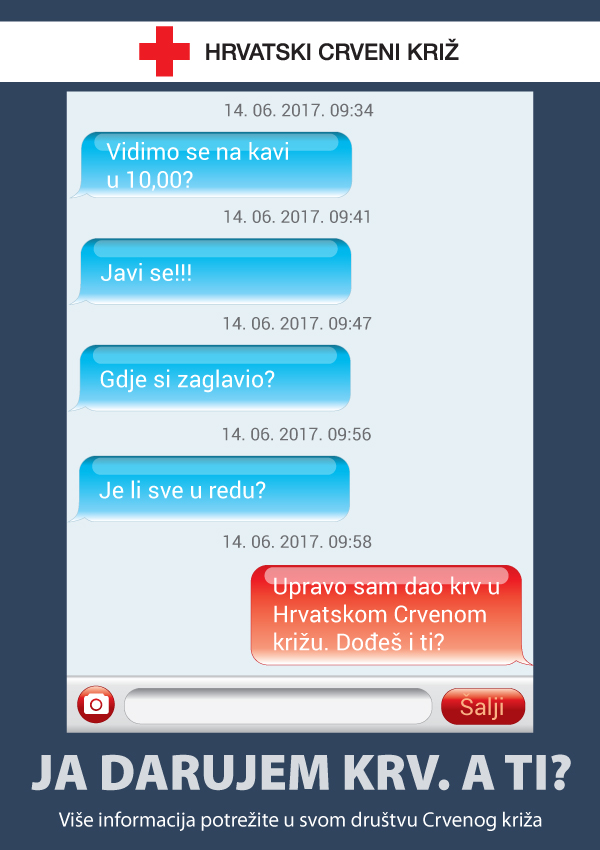 Gradsko društvo Crvenog križa Dugo Selo organizira redovnu akciju dobrovoljnog darivanja krvi koje će se održati u ponedjeljak 28.08.2017.g. u Crvenom križu Dugo Selo, Ulica 2. Gardijske Brigade “Gromovi” 3, od 12.00 h do 19.00 h (pauza 14,30-15,00).