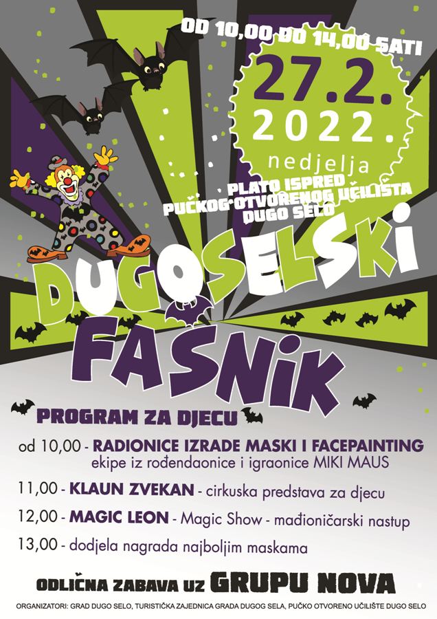 Vjetar i snježne pahulje malo su pošemerile planove no Dugoselski fašnik ide i dalje. Mađioničar Magic Leon i Klaun Zvekan nastupe će imati u Dvorani Preporod, a tamo se održavaju i radionica izrade maski i facepainting. Grupa NOVA pjeva za sve i širi super vibru. Sve ostaje u istom vremenskom okviru i istoj svemirskoj paralelki. Najbolje maske očekuju i bogate nagrade.
