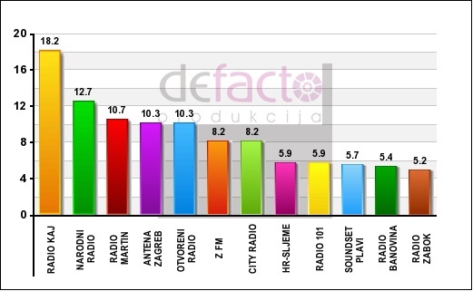 Slušanost radio postaja po istraživanju egencije De Facto u prvih 6 mjeseci 2017.