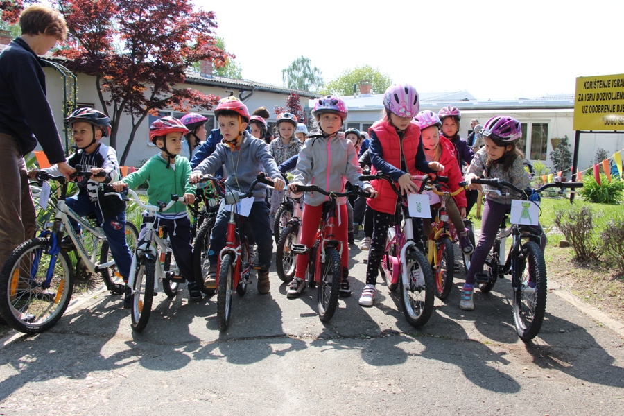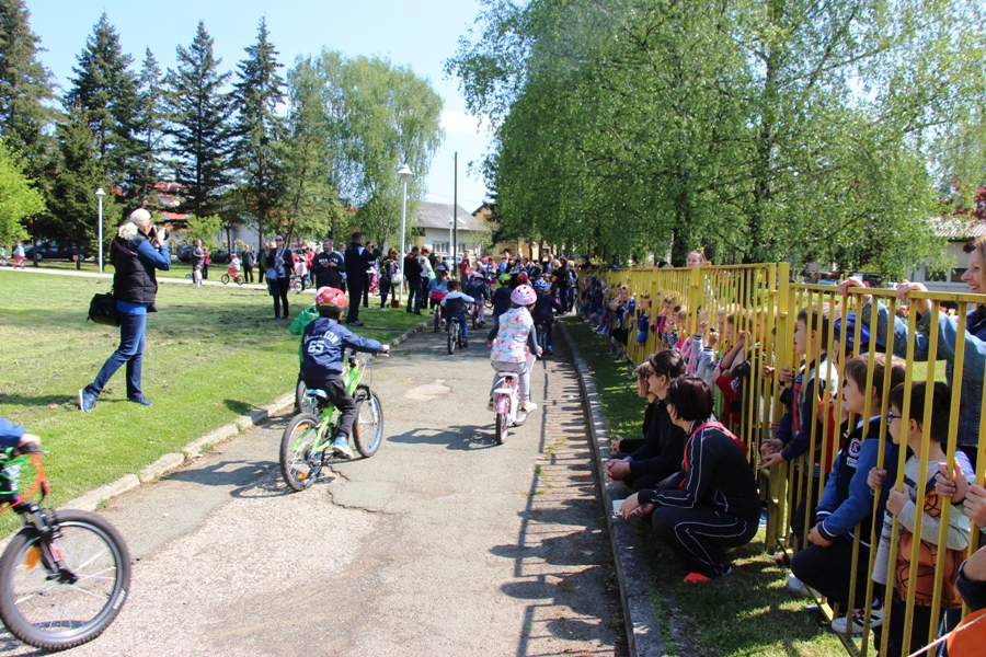No, nitko se nije žurio, niti jurio – jer ovo nije bila natjecateljska biciklijada. Ovo je bila eko biciklijada vrtićkih grupa predškolaca iz odgojnih skupina Žabice, Bubamare, Zvončići, Vjeverice, Ježići i Patkice, njih osadmesetak, koji su vozili pod motom "Bicikl vozi - Zemlji pomozi". I na kraju nije bilo važno prvi doći na cilj, nego da svi zajedno dođu do cilja, zato su svim sudionicima po završetku uručene medalje.