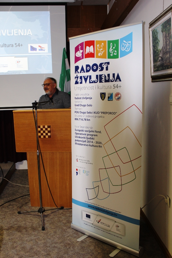 U Gradskoj vijećnici održana je prezentacija projekta „Radost življenja“ za koji je Grad Dugo Selo dobio bespovratnu potporu u iznosu od 807.000 kuna u sklopu Poziva na dostavu projektnih prijedloga Umjetnost i kultura za 54+. Ukupna alokacija za dodjelu bespovratnih sredstava u okviru Poziva iznosi 20 milijuna kuna, od toga je 85% sredstava osigurano iz Europskog socijalnog fonda, dok obavezni udio nacionalnog sufinanciranja od 15% osigurava Ministarstvo kulture iz državnog proračuna Republike Hrvatske.