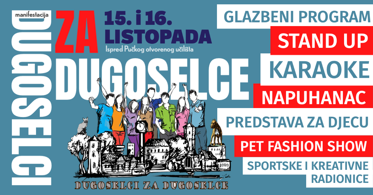 - Dugo Selo opet pokazuje svoje veliko srce – 15. i 16. listopada na platou ispred Pučkog otvorenog učilišta Dugo Selo održat će se velika manifestacija zbog Zdravka Podgajskog, akcija je pokrenuta preko popularne FB grupe „Kaj vas žulja Dugoselci“, a ovdje je moguće naći sve informacije o sudionicima i događanjima u ta dva dana.