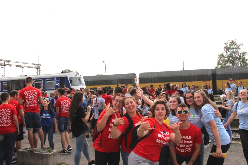 U šarenoj, bučnoj koloni bilo je 5 razrednih odjeljenja četverogodišnjih programa i 4 odjeljenja trogodišnjih programa – ukupno 209 učenika završnih razreda. Hodajući Ferenčakovom , Sportskom i Osječkom ulicom prešli su Zorićevu kod gradskog sata, uz kratko strpljivo zaustavljanje vozača. Putem Kolodvorske stigli su do željezničke stanice te su se nakon kratkog čekanja, tijekom kojeg su zabavljali ostale putnike, ukrcali se u bajkovito oslikani vlak.