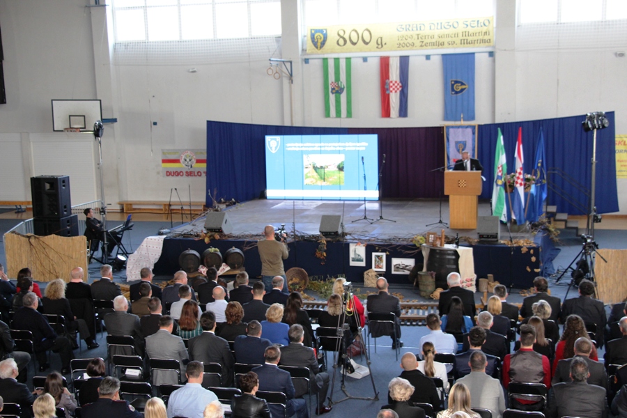 Gradonačelnik Dugog Sela Nenad Panian pozdravivši i zahvalivši se svim nazočnim uzvanicima i gostima u prostoru Gradske sportske dvorane izložio je pregled svih aktivnosti učinjenih tijekom proteklih godinu dana. Među istaknutim projektima navodi se Reciklažno dvorište koje je nedavno službeno i otvoreno, i kao takvo jedno od većih objekata takve vrste. Ministarstvo graditeljstva i prostornog uređenja za energetsku obnovu i korištenje obnovljivih izvora energije financirat će projekte energetske obnove zgrade Gradske uprave i zgrade Glazbene škole Dugo Selo. Zatim, nastavio je gradonačelnik, u tijeku su izrade projektne dokumentacije na niz projekata – za rekonstrukciju i dogradnju uzlaznog prostora objekta Gradske uprave, za izgradnju dvorane Dječjeg vrtića Dugo Selo te glavni projekt za Turistički ured u Kolodvorskoj ulici i izgradnju Rekreacijskog centra Puhovo. Ugovorena je izrada glavnog projekta za izgradnju nogostupa i uređenje zelene površine u Sportskoj ulici, a u tijeku su izrade dokumentacije, rješavanje vlasničkih odnosa i dobivanje potrebnih odobrenja za nathodnik za naselje Puhovo, za nogostup u Velikoj i Maloj Ostrni na zapadnoj strani Zagrebačke ulice, za izgradnju pješačke staze do vrha Martin Brega koja će sadržati četiri odmorišta s informativnim panoima. U izradi je isto tako projektna dokumentacija za spojnu cestu nadvožnjaka za Veliku Ostrnu, za spoj Oborovske ulice – istočni nadvožnjak te za etapu rekonstrukcije I. Savskog odvojka i izgradnju sjevernog nogostupa. Izrađuju se projektne dokumentacije za izgradnju nogostupa i parkirališta u Ulici. D. Domjanića, nogostupa u Šaškovečkoj te u naselju Leprovica, a u Birtovom klancu planira se izgradnja šetnice te kružni tok kod LIDL-a. Od projekata izgradnje komunalne infrastrukture gradonačelnik je istaknuo dovršetak adaptacije prostorija NK Dugo Selo, uklanjanje kioska na zapadnoj strani Kolodvorske ulice, sanacija krova Glazbene škole Dugo Selo i adaptacija u Zorićevoj 61, za potrebe DKPC-a. S druge strane ugovorena je obnova i asfaltiranje cesta na području grada, uređenje zelene površine uz Osječku ulicu za prostor za pse, postavljanje zaštitne ograde na postojećem dječjem igralištu, rekonstrukcije Omladinske ulice u Velikoj Ostrni te prometnice u poduzetničkoj zoni Puhovec, saniran je dio nogostupa u Ulici A. Mihanovića. Proteklog jednogodišnje razdoblje, na kraju je zaključio gradonačelnik, obilježili su radovi na izgradnji Omladinske ulice u Velikoj Ostrni koji su u završnoj fazi. Projekt je vrijedan 4,4 milijuna kuna i sufinanciran je iz Europskog poljoprivrednog fonda za ruralni razvoj u visini 85 posto te državnog proračuna u visini 15 posto. Radovi na rekonstrukciji javne rasvjete na području grada, također jedan od najznačajnijih zaključenih projekata u proteklom razdoblju, vrijedni su 7,2 milijun kuna, a ušteda električne energije bit će i do 67 posto. „Naši projekti su projekti svih građana Dugog Sela, te se u realizaciji istih nadamo pomoći ministarstava i Zagrebačke županije, koji su nas i dosada pratili“, kraju zaključuje gradonačelnik te upućuje svim sugrađankama i sugrađanima čestitke uz Dan grada Dugog Sela.
