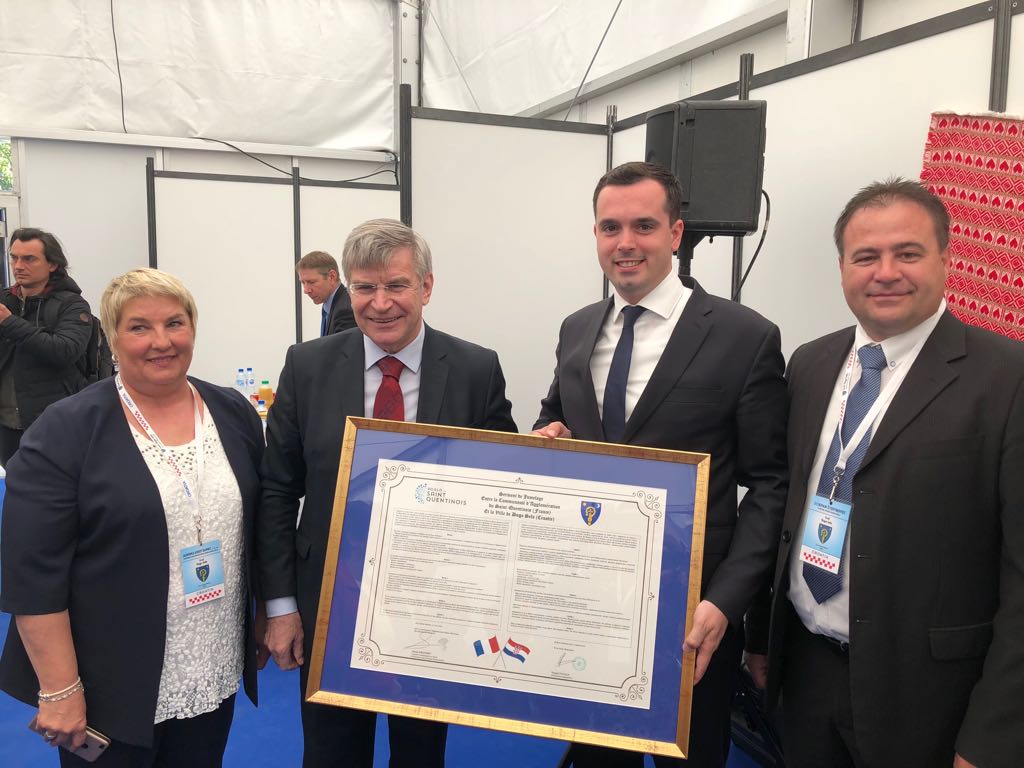 „Svi mi ovdje smo sa jednim ciljem, predstaviti naš maleni grad u pravom svjetlu, našim novim prijateljima. Zajednički cilj svih nas je prijateljstvo, upoznavanje novih kultura, razmjena znanja i iskustava i prije svega druženja. Europa je i Hrvatskoj sada dom, veliki dom u kojemu smo službeno zajedno od 2013. godine. Moramo steći iskustva i približiti se naprednim kulturama i narodima u cilju poboljšanja životnih uvjeta stanovništva. Ovaj ugovor je dokument kojim smo se uvelike približili svom cilju. Moj san je da mogu u bilo kom trenu doći u Francusku i pozdraviti se sa svakim stanovnikom aglomeracije St. Quentin i reći da mi je prijatelj. Prijateljstvo znači povjerenje, sigurnost i osmijeh na licu.