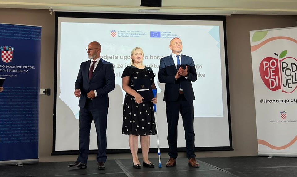U utorak, 10. rujna državni tajnik u Ministarstvu poljoprivrede, šumarstva i ribarstva Zdravko Tušek dodijelio je u hotelu Westin u Zagrebu ugovore o bespovratnim sredstvima za infrastrukturno opremanje posrednika u lancu doniranja hrane i banke hrane. Ugovor o dodjeli bespovratnih sredstava za projekt „Oprema za socijalnu samoposlugu“ koji se financira iz NACIONALNOG PLANA OPORAVKA I OTPORNOSTI 2021.-2026. (NPOO) uručen je i ravnateljici Gradskog društva Crvenog križa Dugo Selo, Gordani Kocaj.