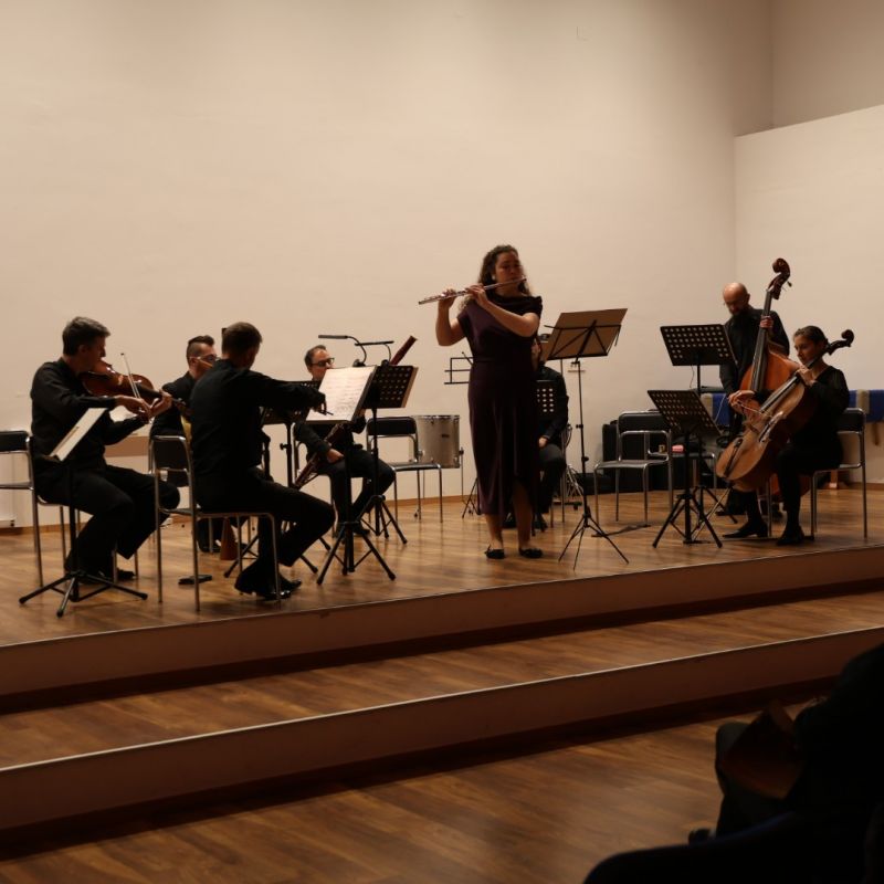 Koncert je započeo u svečanoj i toploj atmosferi, a osobitu pozornost slušatelja privukli su dugoselski umjetnici čija je kreativnost i umjetnička izvrsnost bila u središtu ove glazbene večeri. Flautistica Sara Lončar nastupila je kao solistica u Schubertovoj Introdukciji i varijacijama “Trockne Blumen”, gdje je svojim muzikalnim fraziranjem i sigurnom tehnikom osvojila publiku. Njezina interpretacija donijela je djelo u punoj izražajnoj snazi, a publika ju je nagradila dugotrajnim pljeskom.