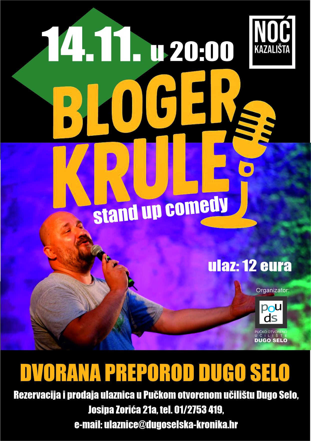 Zbog velikog interesa publike, Pučko otvoreno učilište Dugo Selo je uspjelo osigurati ograničeni broj dodatnih karata za večerašnji stand up na kojem nastupa poznati Bloger Krule sa svojom predstavom „Obrana i zaštita od gluposti“.