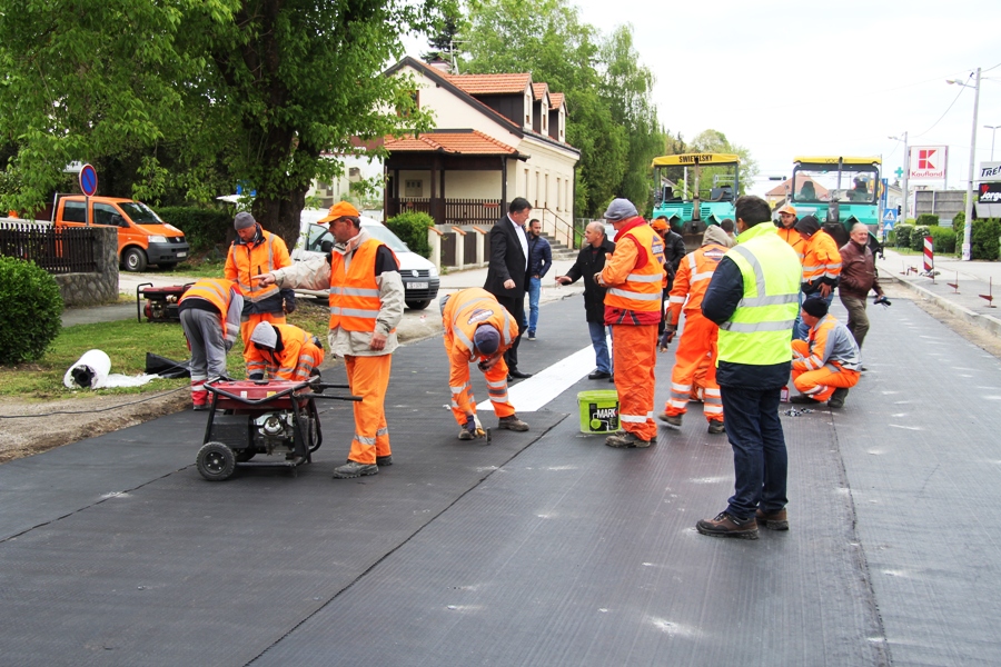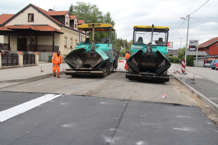 Dionica je duga 1850 m, a danas je započelo postavljanje prvih metara asfaltnog sloja. Više o radovima saznali smo od šefa gradilišta Zdenka Raiča iz tvrtke Swietelsky. „Postavlja se polipropilenska mreža, nakon čega ide asfaltiranje s nosivim slojem kolnika. Ova tehnologija primjenjuje se kada je ispod betonski kolnik na koji ide asfaltni, a mreža služi da se dilatacije betonskog kolnika ne prenose na asfaltni te da cesta bude kompaktna i dobro izvedena“, pojasnio je Raič o radovima čiji se završetak očekuje sljedeći utorak. Naglasio je i kako će prometnica cijelo vrijeme biti zatvorena jer nema mogućnosti za etapno obavljanje radova. Gradilište je obišao gradonačelnik Stipo Velić u društvu predstavnika Županijske uprave za ceste i svojih suradnika. „Prvenstveno se ispričavam građanima koji će sljedećih tjedan dana morati putovati do svojih odredišta zaobilaznim pravcima. Zagrebačka bi trebala biti gotova za šest dana, iscrtana i puštena u promet. Malo smo kasnili iz određenih razloga, a ova prometnica – zapadni ulaz u grad Dugo Selo bit će kvalitetno napravljena“, kazao je Velić. Podsjećeno je kako je prošli tjedan u sklopu rekonstrukcije Zagrebačke ulice asfaltirano i 550 metara nogostupa. „S obzirom da ide sloj od 11 cm asfalta morali smo to prilagoditi. Također, i kolnim ulazima koje ćemo rješavati naknadno kad se riješi cesta“, dodao je Velić.