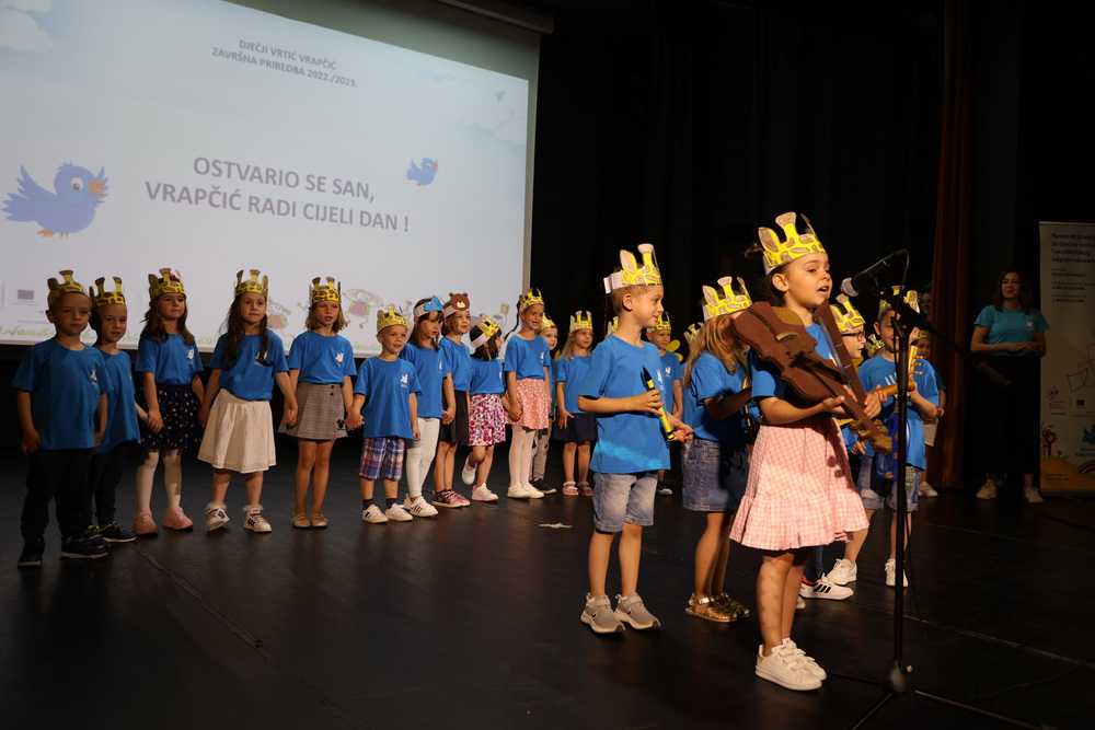 U sklopu provedbe EU projekta „Ostvario se san, Vrapčić radi cijeli dan“, Europskog socijalnog fonda, Dječji vrtić Vrapčić održao je završnu priredbu u kino dvorani Preporod. Na priredbi su sudjelovale 4 vrtićke skupine (100 djece) – Lavići, Žirafice, Tigrići i Mišići (predškolci).