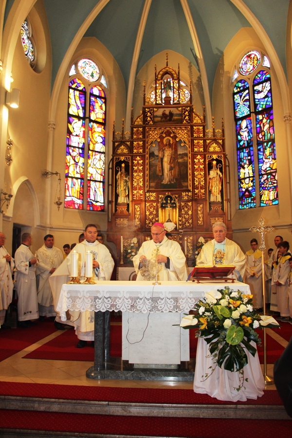 Nakon mise župnik Slavko Kresonja je u župnom dvoru upriličio kratak prijem za vojnog ordinarija biskupa Juru Bogdana, gradske čelnike, ravnatelje osnovnih škola, predstavnika OS RH, bojnika Željka Barbira iz dugoselske vojarne te mnogih drugih. Bilo je krasnih poruka biskupa i gradskog vodstva o miru i zajedništvu. Gradonačelnik Nenad Panian je vojnom biskupu poklonio monografiju 53. samostalne bojne, a zamjenik gradonačelnika Nikola Tominac knjigu o 1. svjetskom ratu.