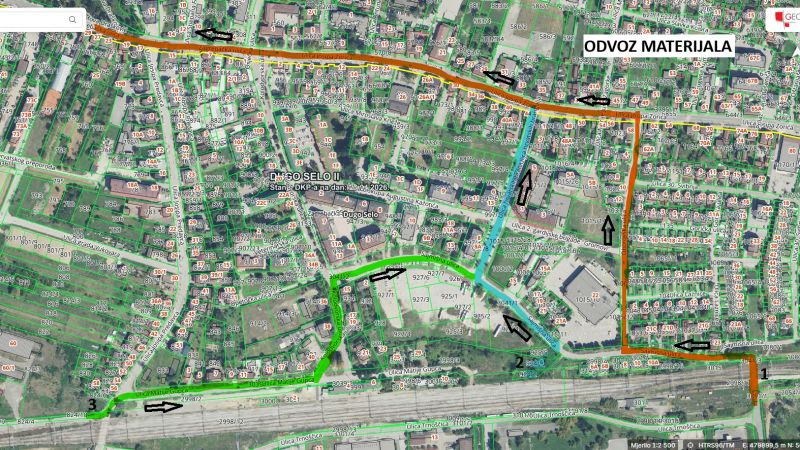 Izvođač radova na izgradnji željezničkog kolodvora u Dugom Selu uvodi kamionski prijevoz za potrebne radove, odnosno za dovoz i odvoz kamenog materijala i iskopa te je osigurao čišćenje prometnica čistilicom tijekom kamionskog prijevoza za potrebe izvođenja radova.