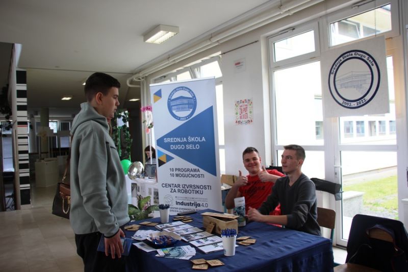 Srednja škola Dugo Selo danas je održala Dan otvorenih vrata. Za sve zainteresirane pripremljen je zanimljiv i bogat program predstavljanja srednjoškolskih programa, ali i svih projekata koji se trenutno provode, ponuda niza slobodnih aktivnosti za učenike, kao i prezentaciju ostvarenih visokih rezultata na raznim natjecanjima.