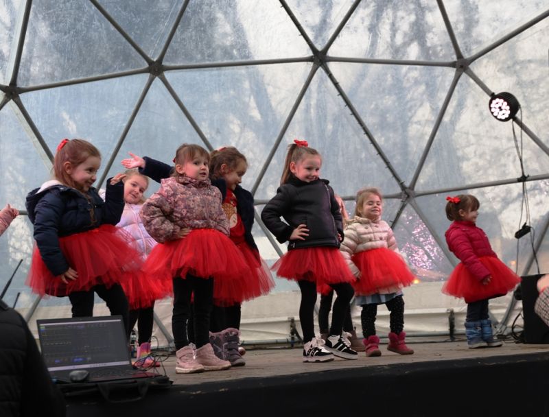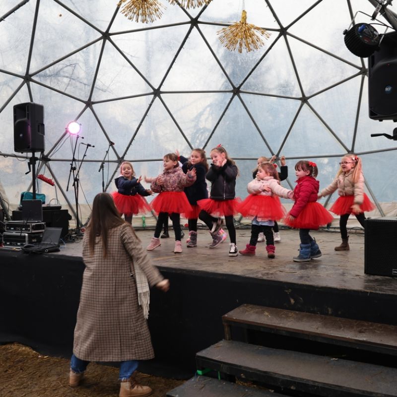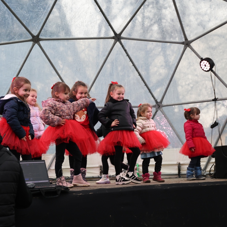 Nakon sajma uslijedila je plesna točka ritmičko-plesne skupine POU Dugo Selo, čiji je nastup ispunjen razigranim pokretima i blagdanskim ritmovima izmamio osmijehe svih okupljenih te stvorio posebno toplu i veselu atmosferu u perivoju.
