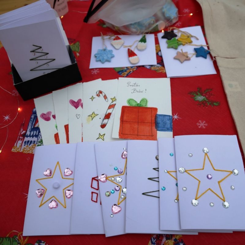 Program je započeo božićnim sajmom rukotvorina, na kojem su sudjelovali članovi Likovne grupe POU Dugo Selo. Za ovu su prigodu pripremili ručno oslikane prigodne platnene vrećice te slatke male ukrase za bor, koji su privukli pažnju posjetitelja i dodatno obogatili blagdansku ponudu sajma.