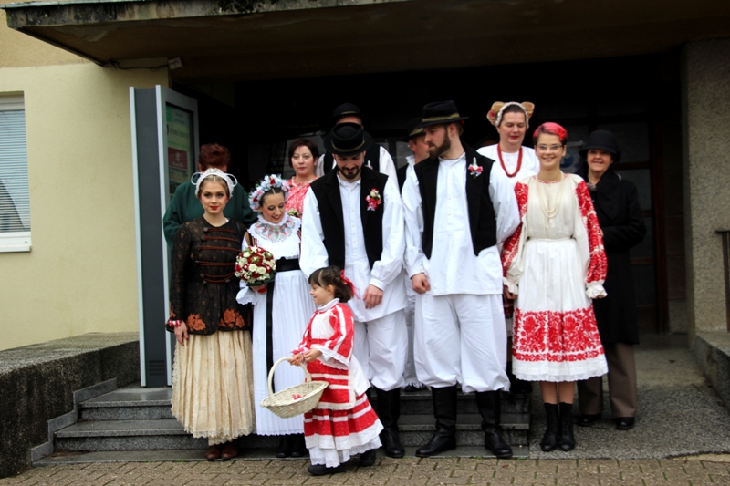 Umjesto blještave vjenčanice okićene umjetnim šljokicama i odijela satenskog sjaja, mladi, sada već bračni par Natalija Tisak i Martin Melić za svoje su vjenčanje odabrali su tradicionalno ruho. Ne zna se kada je takav prizor viđen prije ovog vjenčanja u Dugom Selu. Mladence su u odijevanju slijedili kumovi, roditelji i rođaci čime su pridonijeli nesvakidašnjem ugođaju već zaboravljene tradicije.