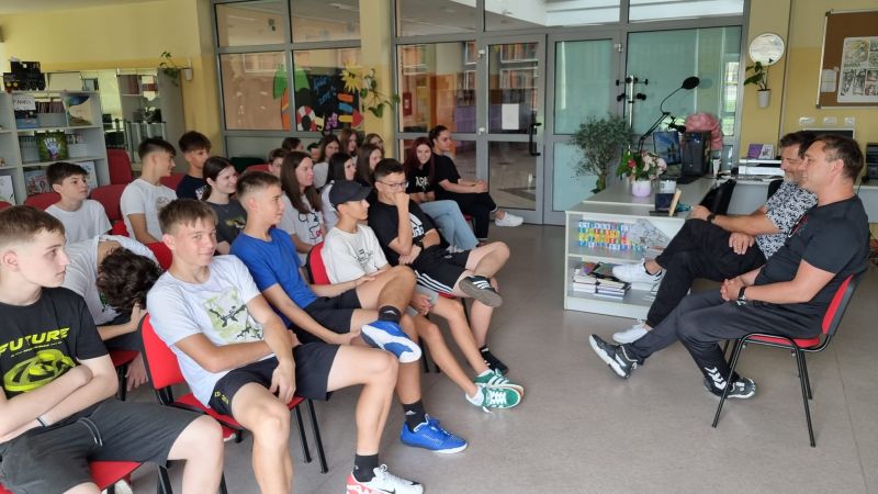 Proslavljeni rukometaš Vlado Šola učenicima je govorio o svojoj profesionalnoj sportskoj karijeri. Susret se odvijao u sportskoj dvorani i školskoj knjižnici gdje su učenici imali priliku postavljati pitanja i dobiti odgovore iz prve ruke.