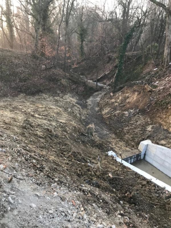 U ovoj fazi riješene su armirano betonske stepenice na izljevnoj strani propusta te završno uređenje korita vodotoka. Slapište inače služi da uslijed bujica koje prolaze kroz cijevni propust ne dolazi do oštećivanja korita potoka. Radi se o gradskoj investiciji ukupne vrijednosti 25.400 eura. Prethodno je izgrađen cijevni propust na potoku Martin breg za potrebe izgradnje vodovodne mreže te je u sklopu projekta „Regionalni vodoopskrbni sustav Zagrebačke županije Zagreb istok“ izveden nasip zamjenskog materijala i spoj vodovodne instalacije između Sportske ulice i Domobranske ulice.