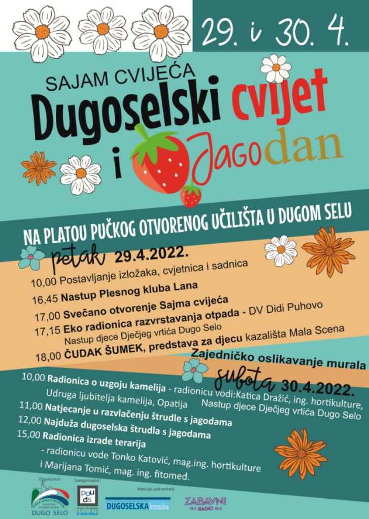 Proljeće je doba kada se budi priroda, a s njime kreće i uređenje balkona i vrtova. To je ujedno i idealno vrijeme za kupovinu novih vrsta biljaka, a svoju ponudu predstavljaju proizvođači u Dugom Selu. Sajam cvijeća „Dugoselski cvijet“ otvoren je danas, 29. travnja, na platou kod Pučkog otvorenog učilišta. Ove je godine gost Sajma opatijska Udruga ljubitelja kamelija.