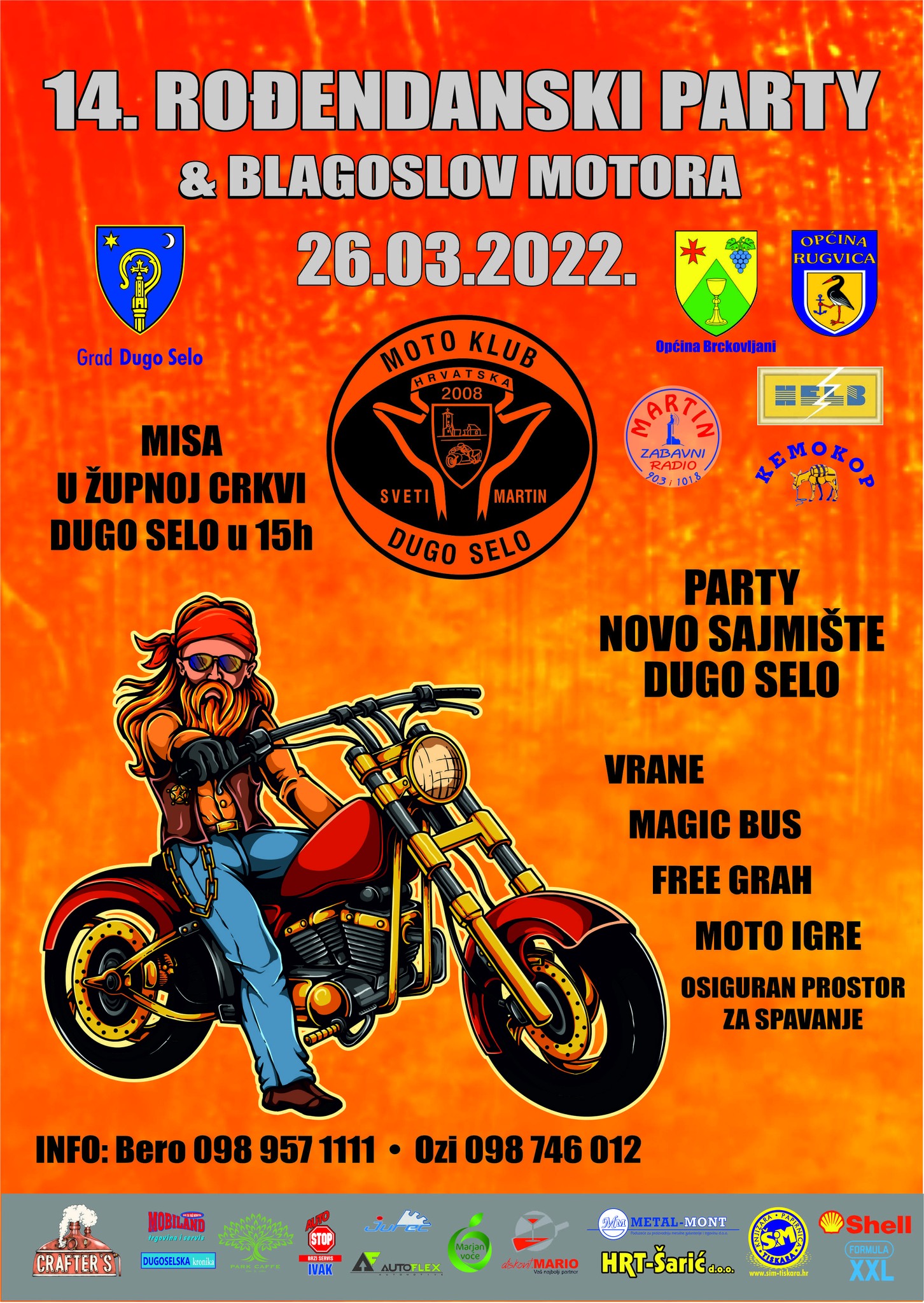 Članovi Moto kluba Dugo Selo pozivaju na njihov sutrašnji tradicionalni moto party! Fešta povodom obilježavanja 14. rođendana od osnutka održat će se na dugoselskom Sajmištu, lokaciji njihovih novih klupskih prostora.