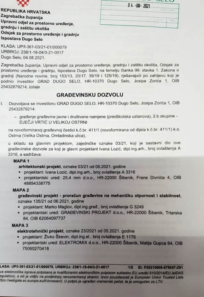 U cilju omogućavanja i pohađanja dječjeg vrtića svoj djeci predškolske dobi na području Grada Dugog sela čiji roditelji ispunjavaju kriterije u tijeku je realizacija projekta Dječjeg vrtića u Ostrni.