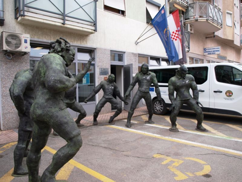 Ispred dugoselskog Doma hrvatskih branitelja postavljena je izložba skulptura akademskog kipara Marina Marinića, inače profesora na Likovnoj akademiji. Prikazuje Maore i njihov tradicionalni ratnički ples haku. Bitna je i poveznica s Hrvatima s Novog Zelanda koje Maori zovu Tarare.