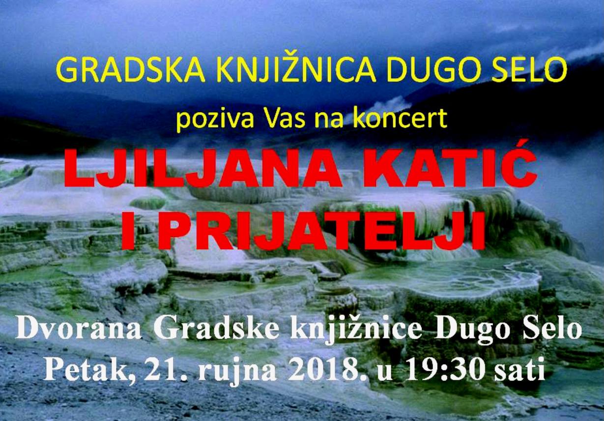 Gradska knjižnica Dugo Selo poziva ovog petka, 21. rujna, s početkom u 19:30 sati na koncert Ljiljane Katić i prijatelja.