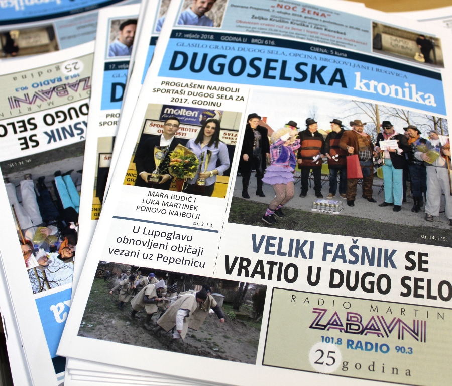 Izašao je 616. broj Dugoselske kronike. U novom broju pročitajte tko su najbolji sportaši Dugog Sela za 2017. godinu, donosimo reportaže s dugoselskog te lupoglavskog fašnika, Noći muzeja u Dugom Selu. U Lupoglavu su obnovljeni običaji vezani uz Pepelnicu.