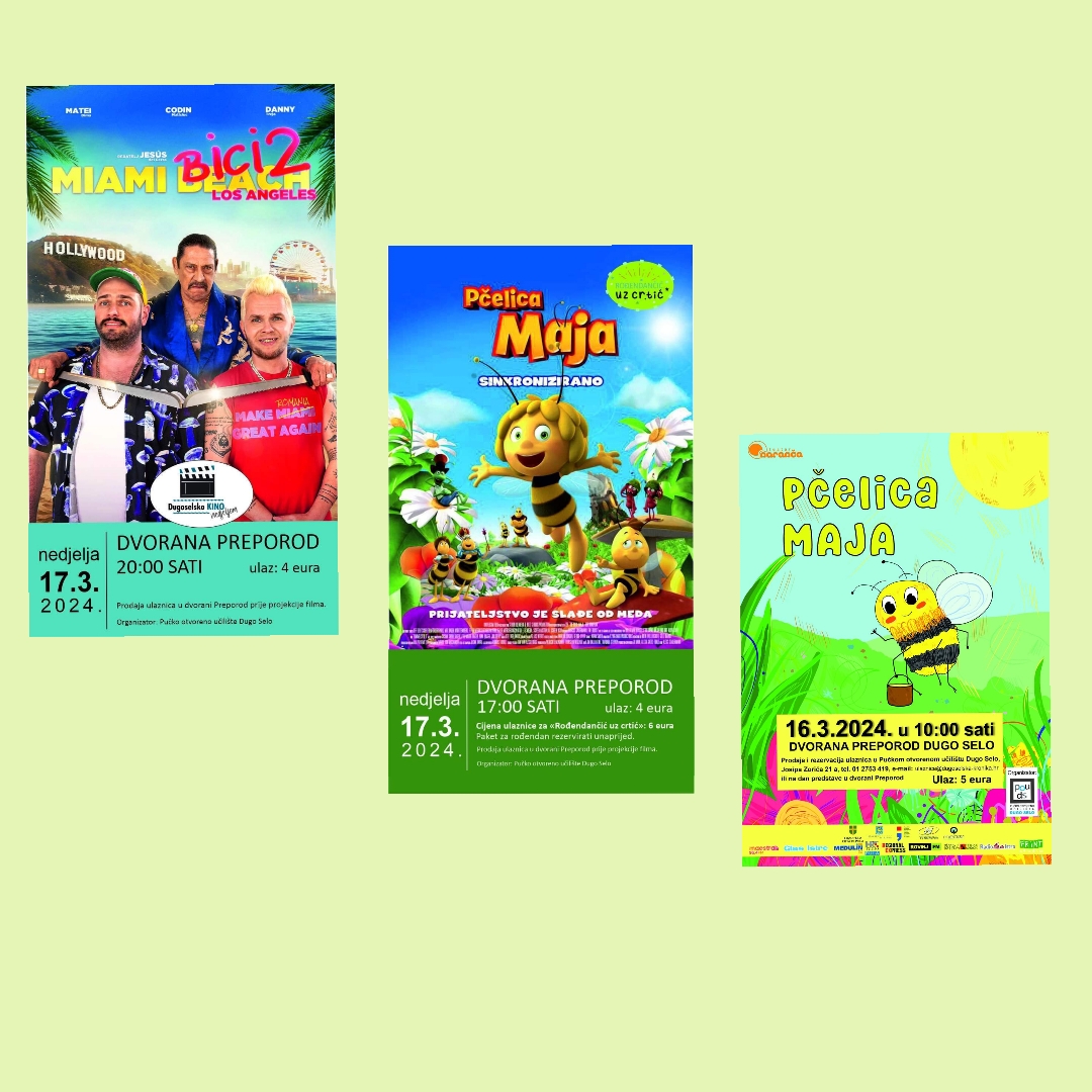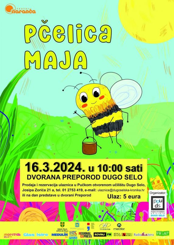 Tijekom predstojećeg vikenda, a povodom nadolazećeg proljeća, dugoselske će mališane čak dva puta posjetiti Pčelica Maja. Naime, u organizaciji Pučkog otvorenog učilišta Dugo Selo, u subotu 16. ožujka, s početkom u 10,00 sati, na pozornici Dvorane Preporod gostuje dječji Teatar Naranča koji će izvesti predstavu o ovoj popularnoj pčelici koja nas uči da treba poštivati svako živo biće.