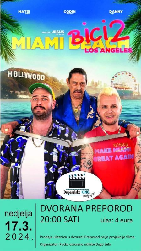 Filmska nedjelja se nastavlja u 20,00 sati, kada ćete moći pogledati nastavak popularne komedije Miami Bici, o dvojici Rumunja koji nastoje svoj mutni biznis razviti u Americi, a koja će vas zasigurno nasmijati do suza.