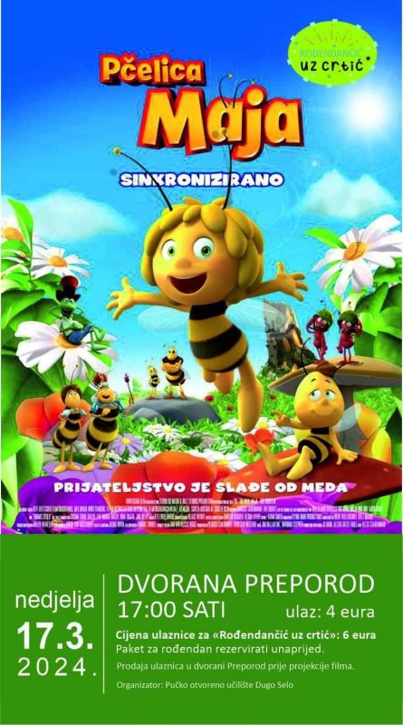 Pčelica Maja dolazi u Dvoranu Preporod i u nedjelju 17. ožujka, s početkom u 17,00 sati, ali ovaj puta mališani će moći pogledati popularni film uz kojeg su rasle generacije.