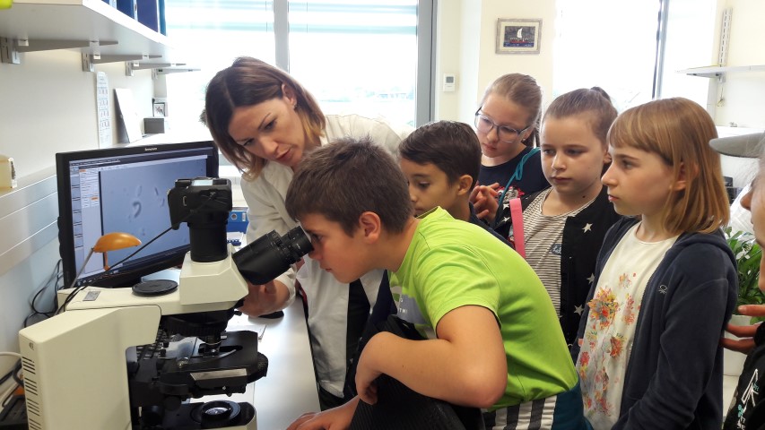 Djelatnici laboratorija bave se ispitivanjima kvalitete površinskih, podzemnih i otpadnih voda. U edukativnom razgovoru četvrtaša s mladim laborantima slijedilo je učeničko izvršavanje zadataka po skupinama - identificiranje vrste bakterije iz rijeke putem mikroskopa rabeći stručne knjige laboratorija. U uvjerenju da će neki od naših učenika biti budući suradnici djelatnika laboratorija u Hrušćici veselo smo pozdravili domaćine. Ostatak radnog dana učenici su sa svojim roditeljima proveli na imanju obitelji Jurišević. U ugodnom druženju učenika i roditelja ovogodišnji Dan obitelji ostat će u posebnom sjećanju. Zahvala gospođi Draženki, voditeljici GVL Hrvatskih voda, hvala svim laborantima na odvojenom vremenu za učenike, zahvala obitelji Jurišević na organizaciji dana.