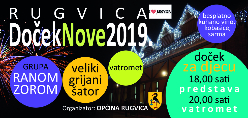 Za doček Nove godine u Rugvici pripremljen je bogat program. U 18 sati počinje predstava za djecu, dolazi i Djed Božićnjak, a u 20 sati svi mogu uživati u raskošnom vatrometu. U grijanom šatoru posjetitelje će zabavljati grupa "Ranom zorom", uz finu gastro ponudu - sarmu, kobasice, kuhano vino.