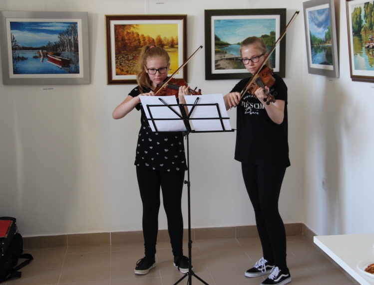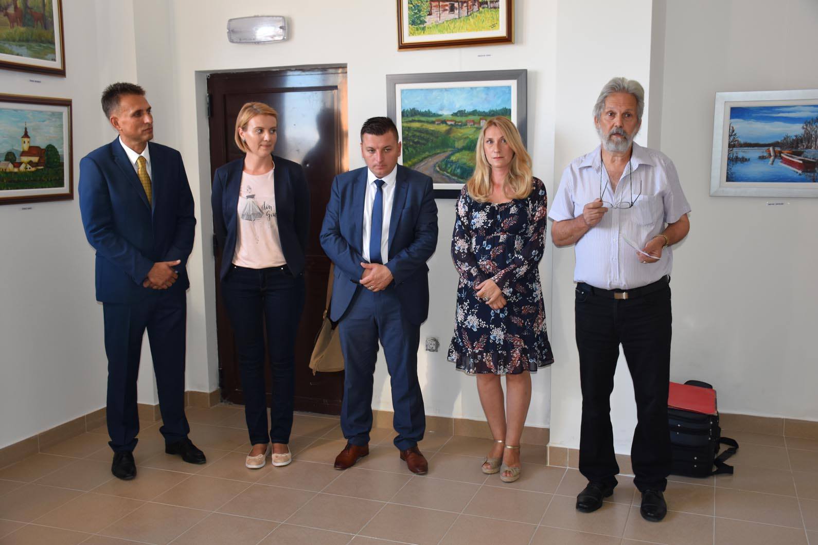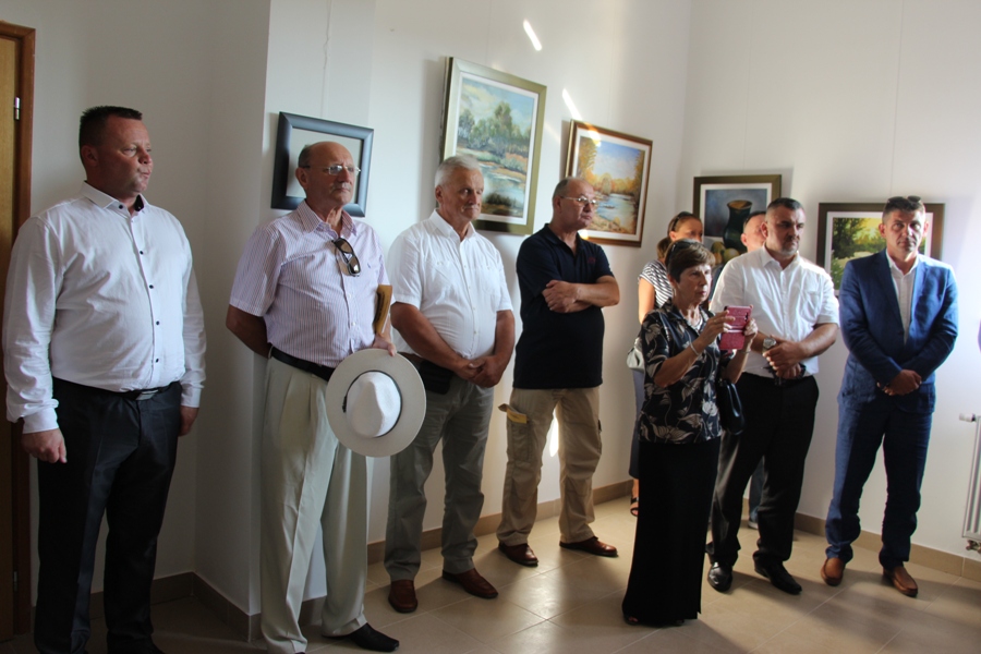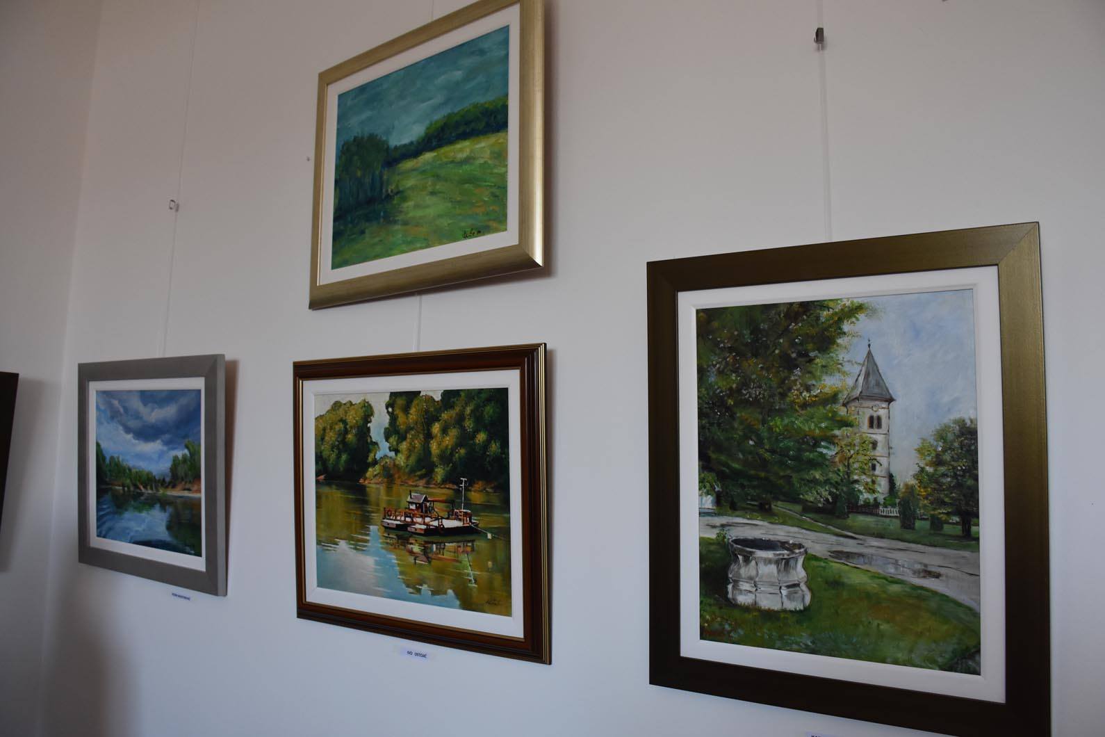 U izložbenom postavu prevladavaju pejzaži realističnog prikaza, slijede detalji iz prirode te mrtve prirode. Osvrt na djela dala je Ana Marija Šprihal naglasivši pritom simbol posavskog kraja, rijeku Savu. „Čini se kako je ovdje odnos prirode i čovjeka u suglasju. Lajtomotiv je gibanje vode, fluidnost koja daruje Posavini zelenilo i plavetnilo – poručuju slikari prenoseći ugođaje savskih krajobraza. Na pejzažima nema ljudi, osim na jednom gdje se nazire lik skelara također jednog od prepoznatljivih motiva ovog kraja. No, motivi poput suncokreta, polja žita, čamaca za ribolov, crkvi, kuća snažno ukazuju na prisutnost čovjeka. Umjetnici prenose tu vitalnost, svjedočeći o ljubavi stanovnika prema dragom zavičaju. Ova djela odražavaju oduševljenje neupitnom ljepotom oblika i svih boja Posavine“, rekla je A.M.Šprihal. U glazbenom dijelu otvorenja nastupile su učenice Glazbene škole.